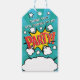 Comic Book Party Geschenketiketten mit einer Comic-Buch-Stil Typografie von 'PARTY!'. Dazu gehören Blau, Orange, Gelb und Rot, Comic-Buchexplosionen, Sterne und Sternenhintergründe. Legen Sie sie auf Gastgeschenke, um Ihren Gästen zu geben. Anpassen mit einer Nachricht. Zusätzliche Leertaste unten, um Namen oder Nachrichten von Hand zu schreiben.