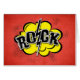 Comic Rock-Illustration mit gelber Wolke und Halfton-Dekoration auf rotem Grunge-Hintergrund