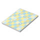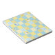 Ein lustiges Notepad oder Jotter, mit einem Imitat Patchwork-Design von Schafmotiven und Mustern in Blues und Yellows, verbunden mit der Koordination von Karo Ginghams und Polkas Dots.