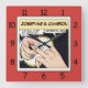 Comic Style Bling Ring Wedelzange Rot Quadratische Wanduhr
