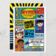 Comic Style Superhero Geburtstagseinladungen. Planst du ein Superheld-Party? Laden Sie die Freunde Ihres Kindes ein, um sich in ihren Lieblings-Superhelden anzuziehen! Diese Einladung enthält niedlichen Kinder, die in Superhelden-Kostümen mit Heldensymbolen und Kappen gekleidet sind. Die Skyline der Stadt und der blaue Sonnenaufgang schmücken den Hintergrund mit farbenfrohen Boxen im Comic-Stil. Diese Einladung ist eine phantastische Wahl für Geburtstagsjungen, die Superhelden oder Kostümsklaven-Party Liebe geben. Personalisieren Sie einfach mit Ihren eigenen Party-Informationen.