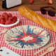 Eine mutige und dynamische Explosionspapiertafel im Comic-Stil, inspiriert von der klassischen Pop-Kunst. Mit kräftigen Stößen, halben Punkten und explosiver Energie in lebhaften Rot-, Schwarz- und Blautönen zeichnet dieses Kunstwerk das Retro-Comic-Gefühl mit einer modernen Drehung auf. Ideal für lustige, energetische Themen, die Aufmerksamkeit und Nostalgie erfordern.