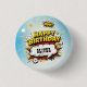Comic Style Superhero Boy's Name Birthday button. Make a child’s birthday extra special with these fun superhero comic-style birthday buttons! Featuring bold 3D lettering, playful POW & WOW elements, this button is perfect for little heroes who love action and adventure. The button can be personalized with any name, making it a unique keepsake for birthdays.