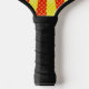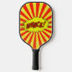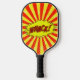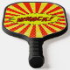 Pickleball-Paddel mit dem Comic Whack Logo in Rot und Gelb.