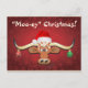 Senden Sie Familie und Freunde diese einzigartige "One of a Kind" Comical Longhorn Steer Weihnachtskarte! Es gibt einen Comical Longhorn Steer, der einen Weihnachtshut und Ziergegenstände trägt...jedem einen "MOO"~EY CHRISTMAS wünschen..und ein glückliches "MOO"-JAHR! Dieses "Original" Design wurde von Artist Kerry Miller entworfen.