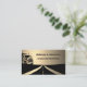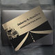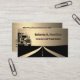 This distinctive business card is designed for a commercial trucker or someone in the transport industry. It includes black truck and highway images on a gold background, along with your name and title on the front. On the back, there are two sections for contact details. You can easily fill in the text template with your details or click Customize to further adapt the card to your needs. The card has a simulated brushed metal effect but is printed on regular paper and contains no metal or foil.