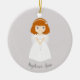 Kommunion Dove Redhead Girl Gebet Ornament / Keepake Dieses schöne und süße First Heilige Kommunion Design eines rosa gekleideten kleinen Mädchen, die ihren ersten Rosenkranz hält, ist auf einem Lavendelboden mit einer friedlichen weißen Taube. Mit diesem wunderschönen Design die großen Erinnerungen der ersten heiligen Gemeinschaft Ihres Kindes. Karo in die passenden Accessoires, Schreibwaren und Gemeinschaftsgeschenke von First Heilige Kommunion.