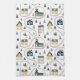 A Pattern Of Churches, And Houses With Pine Trees Designed Kitchen Towel