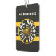 Car Air Freshener schwarz-weiß mit schwarz, weiß und gold konzentrischen Kreisen Design mit "FULTON, MISSOURI CENTER OF THE UNIVERSE" mit "GO AHEAD YOU CAN DO IT" über schwarzen, weißen und goldenen horizontalen Linien, mit Y-NOT-ME Logo in der Mitte und mit Mad Hornet auf der Rückseite.