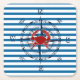 Set von Untersetzer aus Papier mit blau-weiß gestreiften Streifen mit nautischen Thema mit einem Schiffskompass und roter Krabbe!