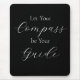 'Lass deinen Compass Be Your Guide' Phrase in weißer Schrift auf schwarzem Hintergrund. Eine inspirierend und ermutigende Botschaft, wenn Sie sie brauchen. Ideal für Zuhause oder Büro.