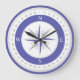 Compass Rose Blue White Nautic Große Wanduhr
