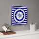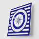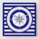 Compass Rose Nautical Blue and White Strip Quadratische Wanduhr