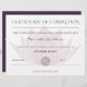 Elegant certificate of completion for yoga and reiki training rennen achievement with a beautiful and modern moiré effect lotus flower. Text and logo to personalize. Kolossale Hand: muted purple.