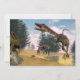 Compsognathus dinosaurier jagen einen Gecko in einer Lagune mit Kalamitbäumen am Tag - 3D rendern