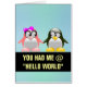 Zwei Cartoon Penguins, einer rosa und einer schwarz, die Hände halten, die über den Grundlagen der Computerprogrammierung verpfänden