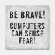 "Sei tapfer! Computer können Angst spüren!" Egal ob Sie ein PC-Anfänger oder ein erfahrener Gek sind - achten Sie auf Ihren Computer, denn sie spüren Ihre Angst und reagieren dementsprechend! Wer sagt, Computer sind nur Maschinen? Albernes Geek-Sprichwort in Not leidendem Schriftart.