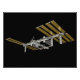 Die von Computer generierte Ansicht der Internationalen Raumstation mit komplexen Funktionen.