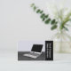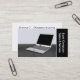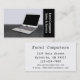 Darstellung eines Laptops auf einem Schreibtisch. Diese moderne und berufliche Visitenkarte hat einen Platz auf der rechten Seite für Ihren Firmennamen im vertikalen Text. Hervorragende Visitenkarte für Computertechniker, Verkaufs- und Reparaturfirmen.