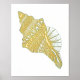 Chic-Folie mit Goldfolie und Aqua-Conch-Muschel auf weißem Hintergrund.