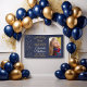 Feiern Sie Ihren Lieblingsgrad mit einem blauen Foto-Banner mit Konfetti. Personalisieren Sie sich einfach mit dem Jahr, dem Namen und der Schule oder der Universität Ihres Absolventen, fügen Sie den Warenkorb hinzu und Sie sind alle Set. Originelles Design von Holiday Hearts Designs (Rechte vorbehalten).