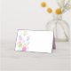 Diese grafischen modernen Blume-Platzkarten sind Teil der rosa, blauen und grünen Konfetti-Blätter, die zum Set der Hochzeit passen. Ideal, um die Gäste bei der Sitzsuche zu unterstützen. Originelle grafische Kunst und Design von Sarah Trett für www.mylittleedenwedings.com