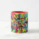 Eine lebendige abstrakte Blume in den Farbtönen Blau, lila, Rot, Korallen, Gelb, Gold, Grün und mehr!