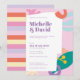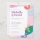Eine farbenfrohe und zeitgenössische Einladung zur Hochzeit in einer frischen Farbpalette.