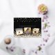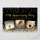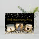 Elegantes, individuelles Jubiläumsdesign mit goldenen und silbernen Konfetti auf schwarzem Hintergrund, moderne Schriftzeichen mit den Worten "Party zum 50. Jubiläum", Ihrem Namen und Jubiläumsdatum und drei Ihrer Lieblingsstipps, die in metallischer Goldfolie gerahmt sind. Personalisieren Sie es mit Ihren Party-Details auf der Rückseite der Einladung.