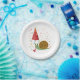 Diese Niedliche Schnecke ist bereit, umgeben von Konfetti zu feiern, mit einem Blowout in seinem Mund und mit einem festlichen Party Hut tragen
