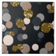 Ein Muster zufälliger Konfetti-Punkte in einem pastellfarbenen Pfirsich, Ahornbraun und Graupalette, mit goldenem Glitzer auf dunklem Hintergrund.