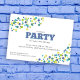 Diese farbenfrohe Party Einladung besticht durch farbenfrohe Konfetti in Blau, Grün, Türkis und Limon.