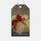 Confetti, Sterne, Bälle, Roter Bow, glückliche Fer Geschenkanhänger