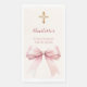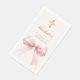 A cream, beige background color. Decorated with a large pink bow and a golden cross. Personalize and add the name and date.