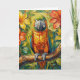 A sweet card to say congratulations on your new parrot or bird! On the front is an impasto painting style parrot and tropical flowers.
