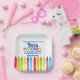 This adorable 2026 preschool graduation party paper plate features a cool grad cap above colorful writing and a row of crayons in rainbow. Cute customizable pre-K graduate decor in fun colors for the last day of elementary school with your kid's name personalized in blue. Congratulations to our preschooler.