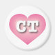 Dieser Magnet verfügt über ein rosa Herz mit einer weiß gekalkten Mitte, die die fett-weißen Großbuchstaben CT, die offizielle Abkürzung für Connecticut, den Staat der Konstitution, enthält.