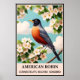 Connecticut Staat Bird - American Robin Vintag Poster