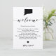 Diese moderne und elegante Karte ist der perfekte Platz für Ihre Hoteltaschen. Geben Sie die wichtigsten Veranstaltungen und einen individuellen Hinweis ein, um Ihren Gästen zu helfen, das Wochenende zu bewältigen.