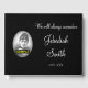 Dieses elegante Beerdigung- oder Gedenkbuch enthält die Meldung "Wir werden uns immer erinnern" und den personalisierten Namen und das Geburtsdatum/das Todesdatum des weitergegebenen Individuums. Es enthält auch ein benutzerdefiniertes Foto. Es könnte verwendet werden, um die Erinnerungen von jemandem aufzuzeichnen, der vor kurzem verstorben ist.