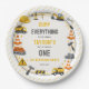 Construction 1st birthday paper plates for a fun builder truck themed party. Perfect tableware for a birthday kid who loves trucks and construction celebrations. 🚧🎉