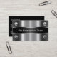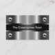Coolest construction business card design with simulated silver metallic background art printed to mimic the look like a metal graphic and printed on both sides with your business name featured on the front and details printed on he flip side. Two side printing included on high quality business card paper stock.