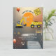 Construction site birthday party invitations featuring an excavator and a dump truck.
