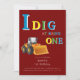 Dig into a fun celebration with this "I Dig Being One" construction-themed birthday invitation! Perfect for your little builder's first birthday bash, this design features a vibrant illustration of a yellow bulldozer ready to get to work. The bold text clearly announces the "I Dig Being One" theme, making it instantly recognizable and exciting. The deep red background with a subtle barn texture adds a rustic and playful touch, while the detailed bulldozer graphic will capture the attention of all your guests. Easily personalize this invitation with your party details to invite friends and family to celebrate this special milestone. It's a fantastic way to kick off your son's first birthday with a powerful and memorable theme!