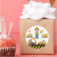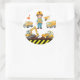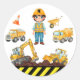 Add to your construction party theme with this cute fun construction birthday sticker. Featuring bold black-and-yellow caution stripes with bright construction vehicles, this design brings the excitement of a busy job site to your party. A cheerful construction worker character where you can add the age of the child adds a kid-friendly touch, making it perfect for little builders. Ideal for boys or girls who love trucks, digging, and all things construction, this invite sets the tone for a high-energy, hands-on birthday bash.