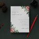 Zeitgenössischer Minimalistischer Winter Botanische Hochzeitsempfang. Elegante Aquarellfarben Winterbotanicals und rote Blumen.