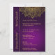 Elegantes und modernes Gold Mandala mit lila Hintergrund Einladung zur Hochzeit. Text kann für Ihren Hochzeitstag oder jede Art von Feier personalisiert werden.