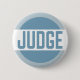 Modernes Design in Blau und Weiß mit dem Text Judge. Der leicht zu lesende Knopf eignet sich perfekt für Wettbewerbe und Veranstaltungen, die einen Richter erfordern. Ideal für Spottrails, Tagungen, Wissenschaftsmessen, Rechtschreibbienen, Blume-Shows, Hundeschauen und Sportveranstaltungen.