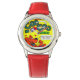 Kinderuhr aus Edelstahl mit rotem Lederarmband