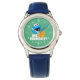 Kinderuhr aus Edelstahl mit blauem Lederarmband